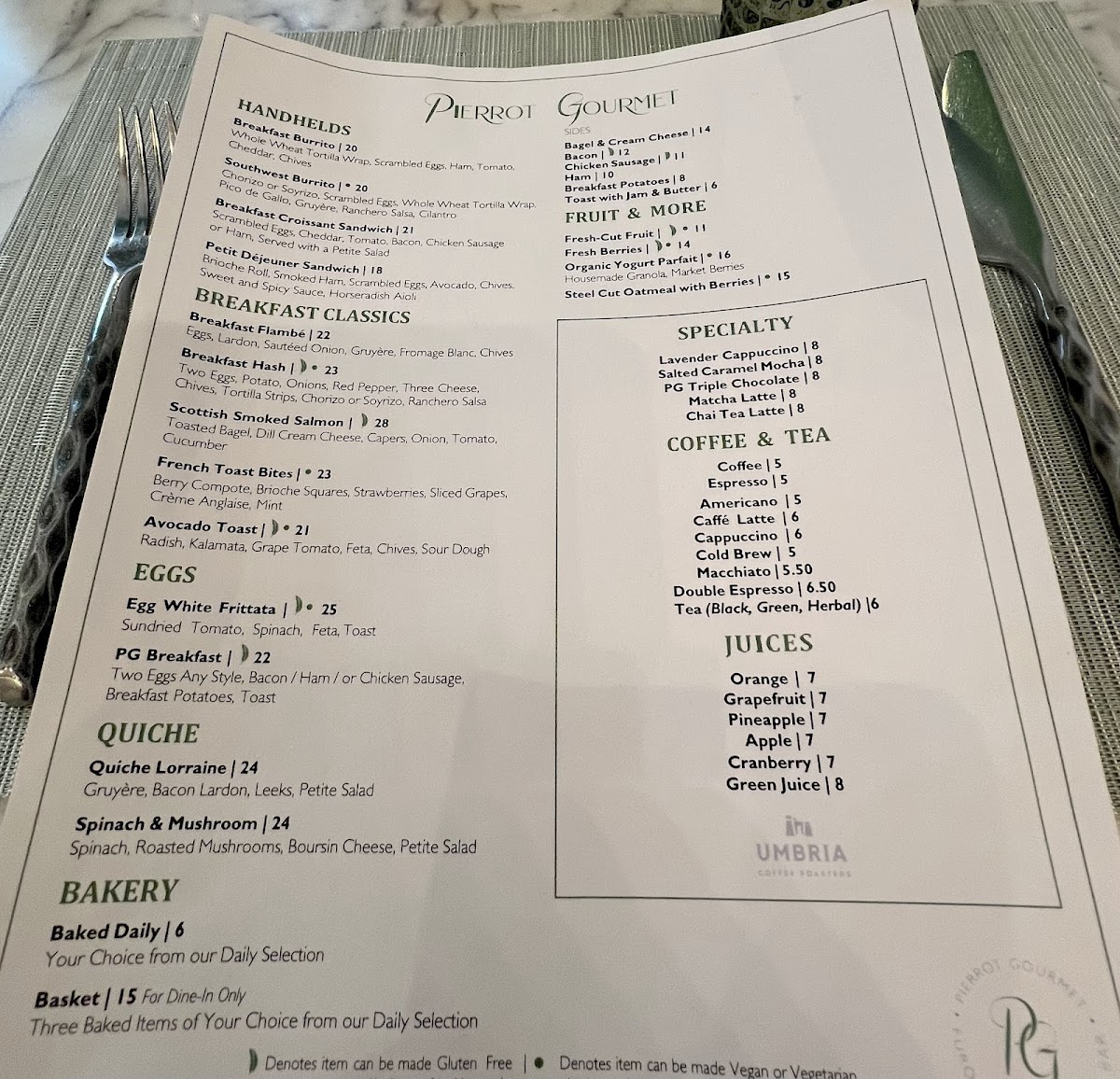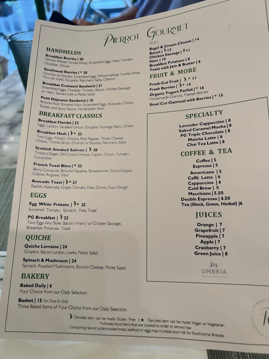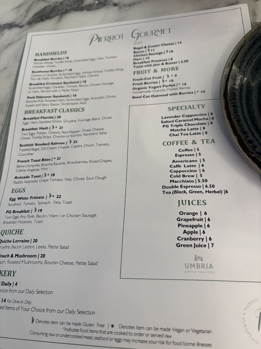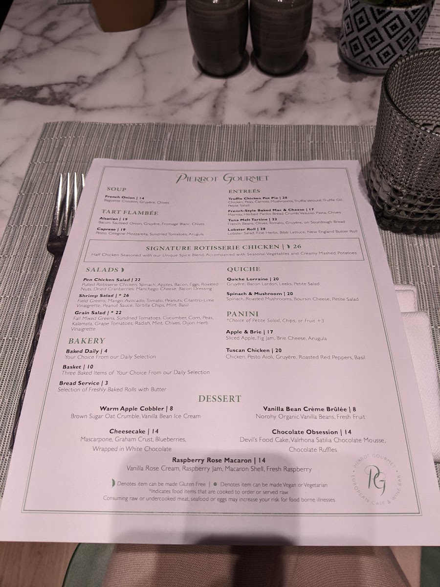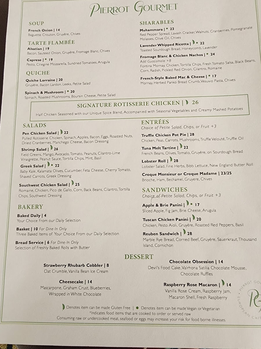 Pierrot Gourmet at The Peninsula Menu